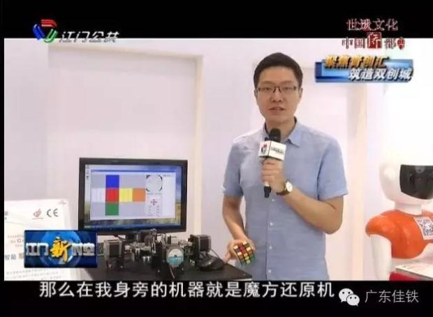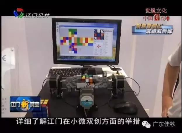 在綜合展示中心當(dāng)中,展示了一批江門小微雙創(chuàng)企業(yè)的高新技術(shù)產(chǎn)品,其中我司自主研發(fā)的“解魔方機(jī)器人”備受關(guān)注,下圖為研發(fā)人員為眾多嘉賓進(jìn)行原理的講解。