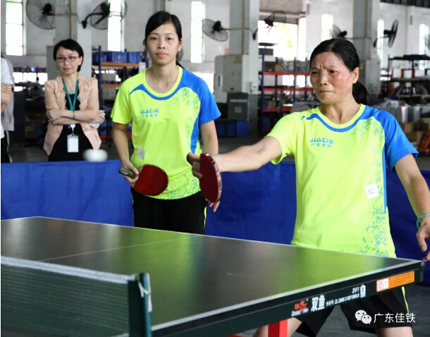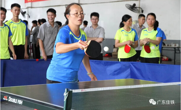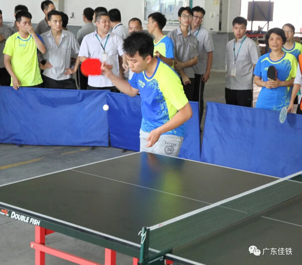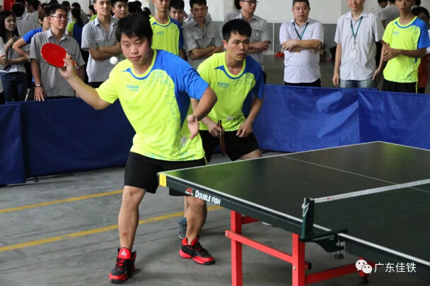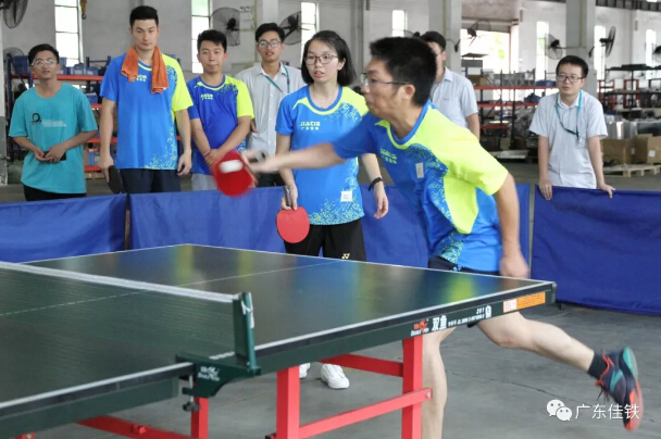 與此同時,第一場乒乓球初賽在2點半也拉開戰(zhàn)線。第一場進行的是A隊制造部對決C隊聯(lián)盟隊,按照男單、女雙、混雙、女單、男雙的順序進行比賽,以五局三勝制決出勝負(fù)。比賽一開始,直拍、橫拍各路選手紛紛登場,選手們的熱情空前高漲,場館里人聲鼎沸,旋轉(zhuǎn)球、弧線球……選手們亮出絕活,水平都相當(dāng)專業(yè),有的甚至不輸專業(yè)選手。最終,C隊聯(lián)盟隊以4:1的優(yōu)勢贏了A隊制造部。