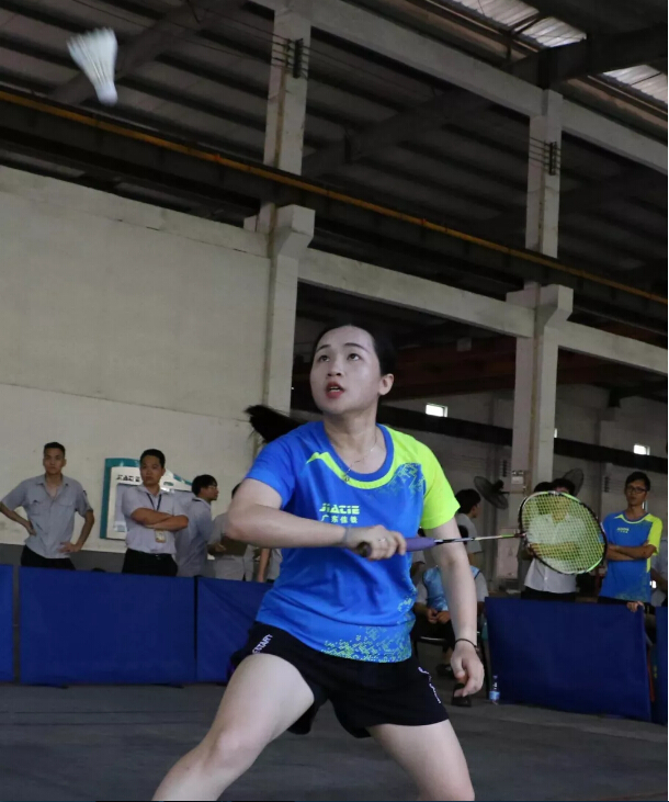 今天羽毛球賽決賽場是B隊超越隊對戰(zhàn)C隊聯(lián)盟隊。雙方隊員都努力拼搏,奮力贏取每一場的勝利。