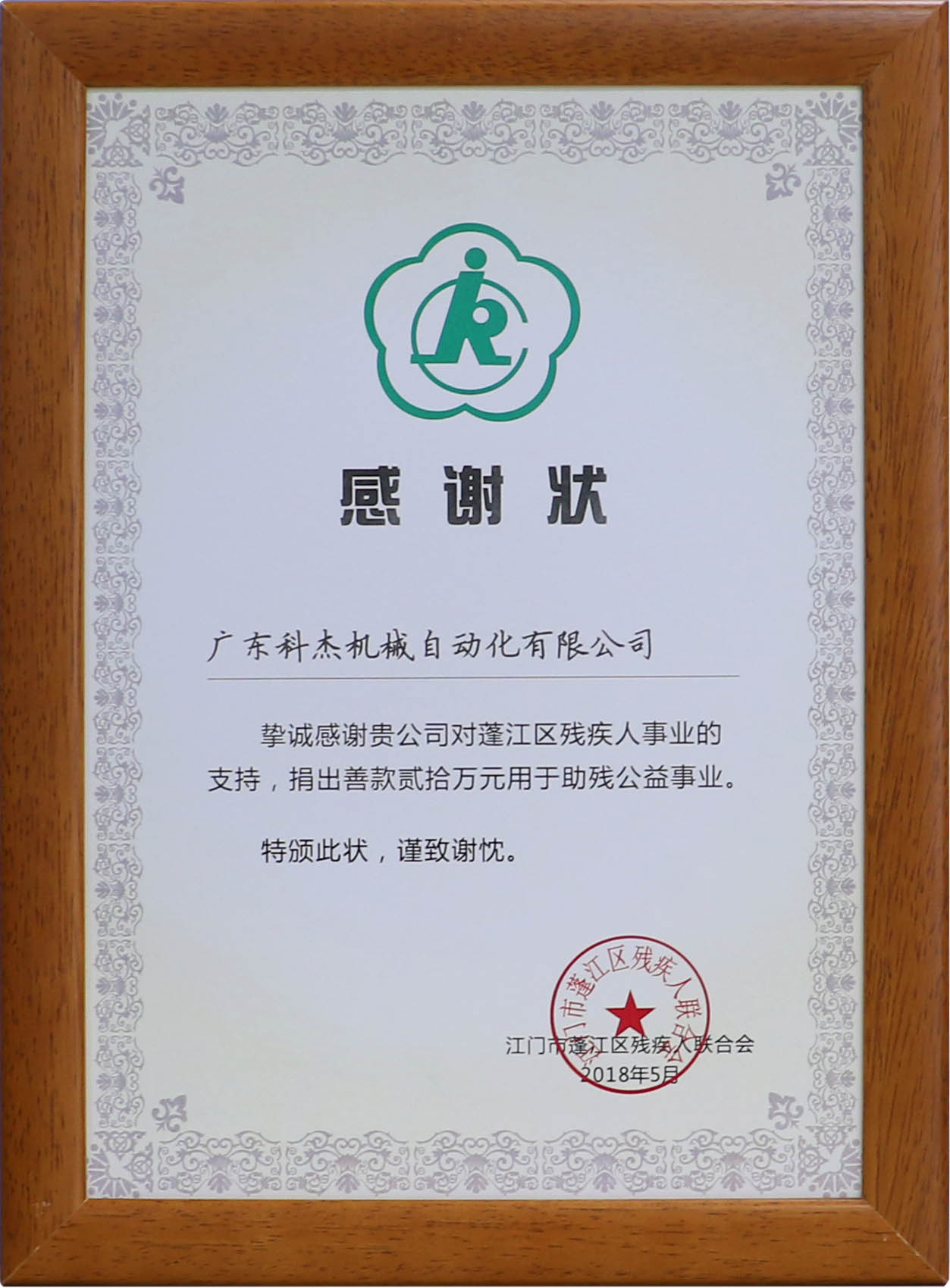 廣東科杰機(jī)械自動(dòng)化有限公司捐贈(zèng)20萬(wàn)元!