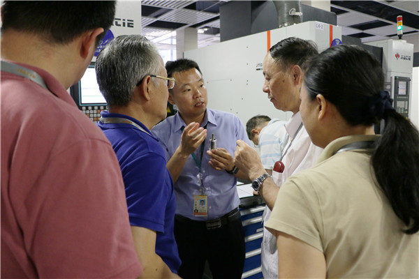 2018年6月11日,中國(guó)機(jī)床工具工業(yè)協(xié)會(huì)(CMTBA)王黎明秘書長(zhǎng)、邵欽作總顧問(wèn)等6位領(lǐng)導(dǎo)蒞臨廣東佳鐵參觀指導(dǎo)。佳鐵常務(wù)副總經(jīng)理兼銷售總經(jīng)理李長(zhǎng)喜女士及銷售總部副總經(jīng)理劉春生先生熱情接待來(lái)賓。我司作為協(xié)會(huì)會(huì)員企業(yè)單位,就公司及行業(yè)動(dòng)態(tài)和未來(lái)的發(fā)展與協(xié)會(huì)各領(lǐng)導(dǎo)交換了看法,并做深入交流。