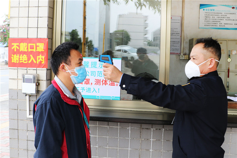 今日開工,廣東佳鐵在保證工廠生產(chǎn)進度的同時,也全面落實戴口罩、量體溫、消毒等防范措施。